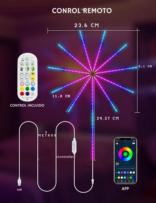 LUCES LED FUEGOS ARTIFICIALES Y SENSOR DE MUSICA