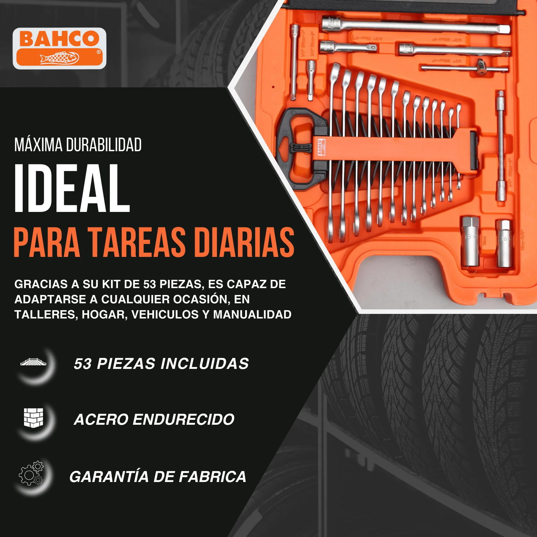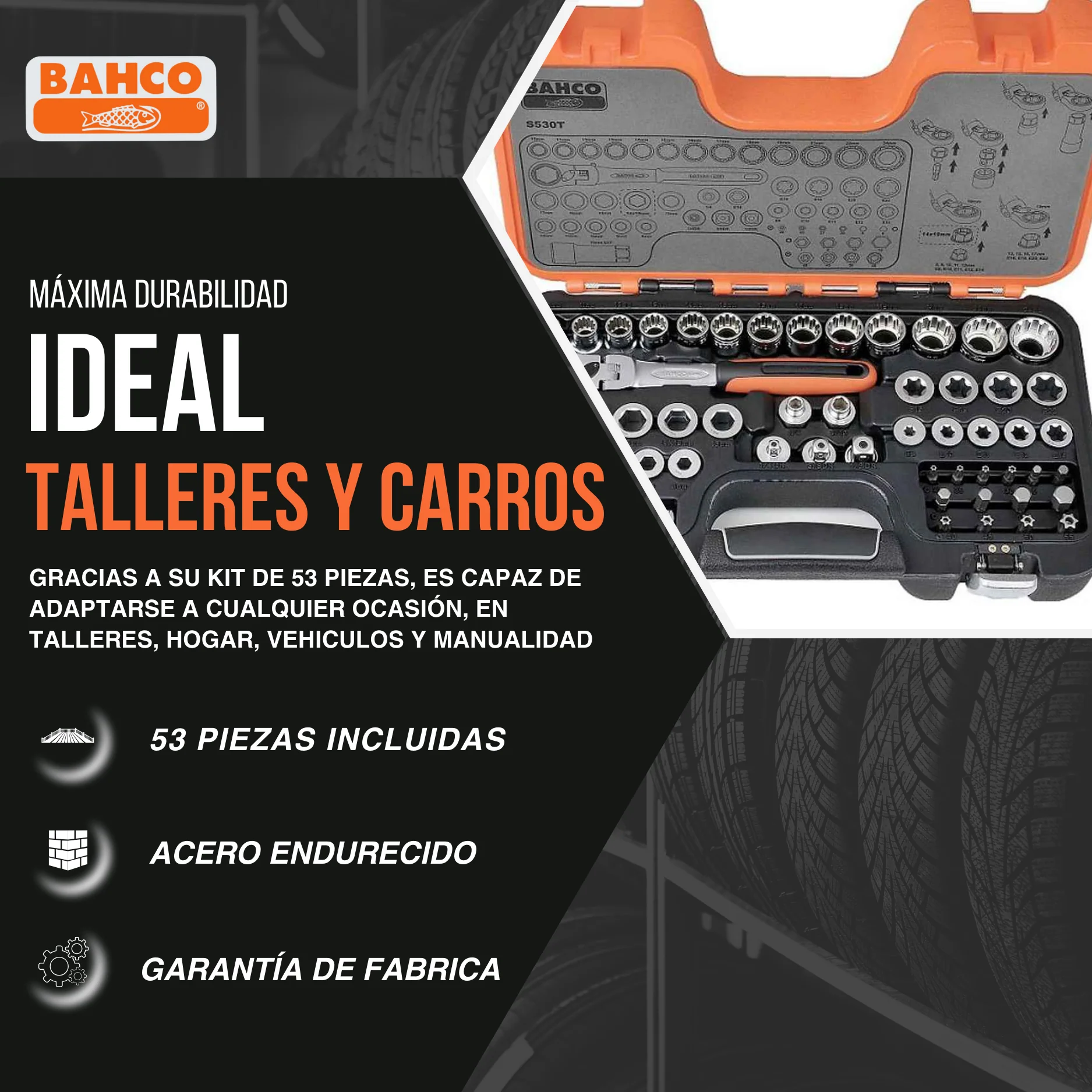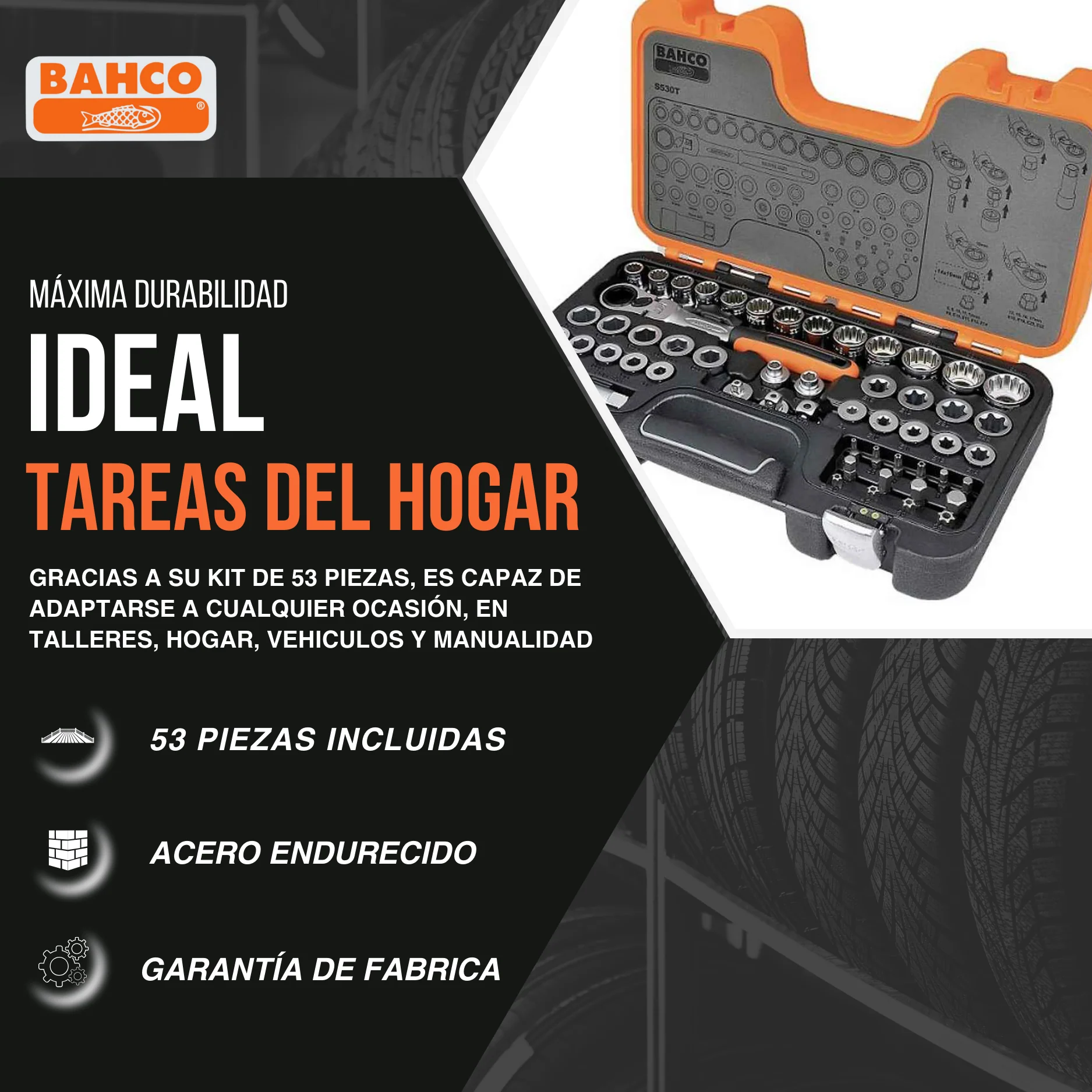Bahco®️ Incorpora en su maletín más de 50 vasos diferentes para adaptarse a cualquier tipo de tornilleria necesaria, para bricolaje del hogar y vehículos.