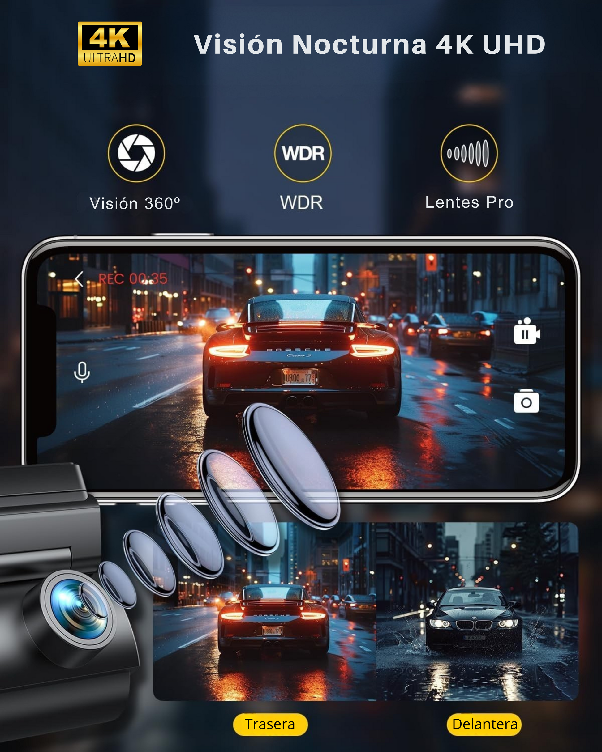 SecurityCam®️ Equipada con una cámara frontal 4K  y una cámara trasera , que brinda una experiencia de video