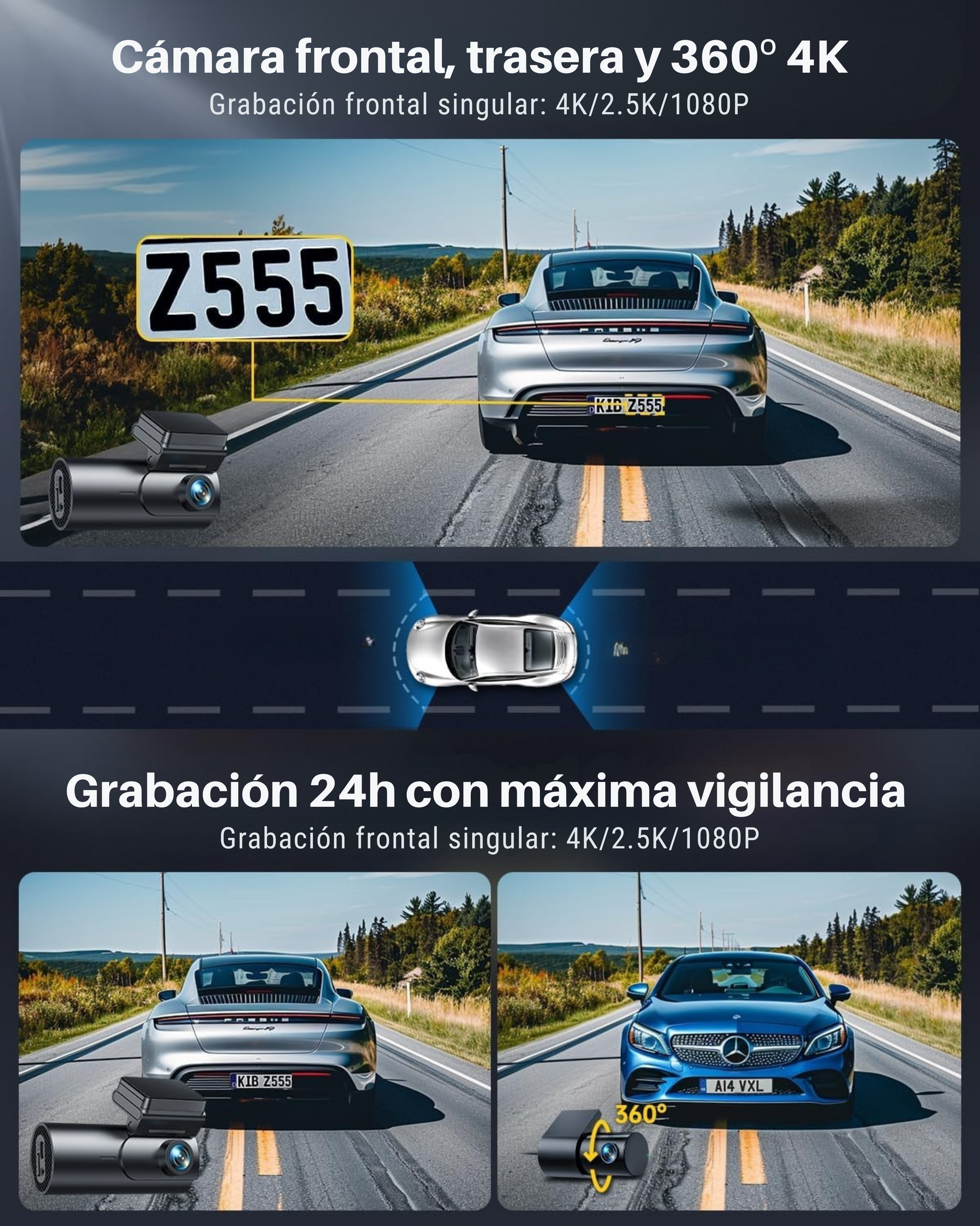 Cámara Coche de Vigilancia |  3 Cámaras en 1 | Delantera | Trasera | 360ª