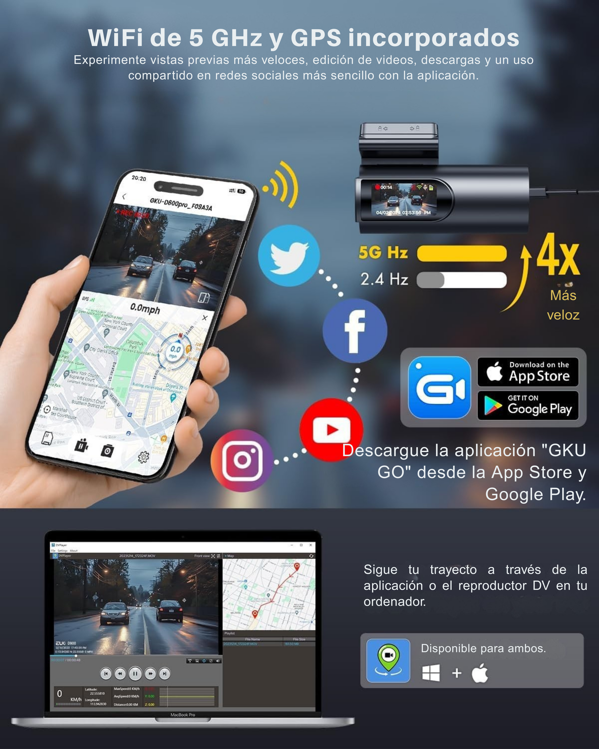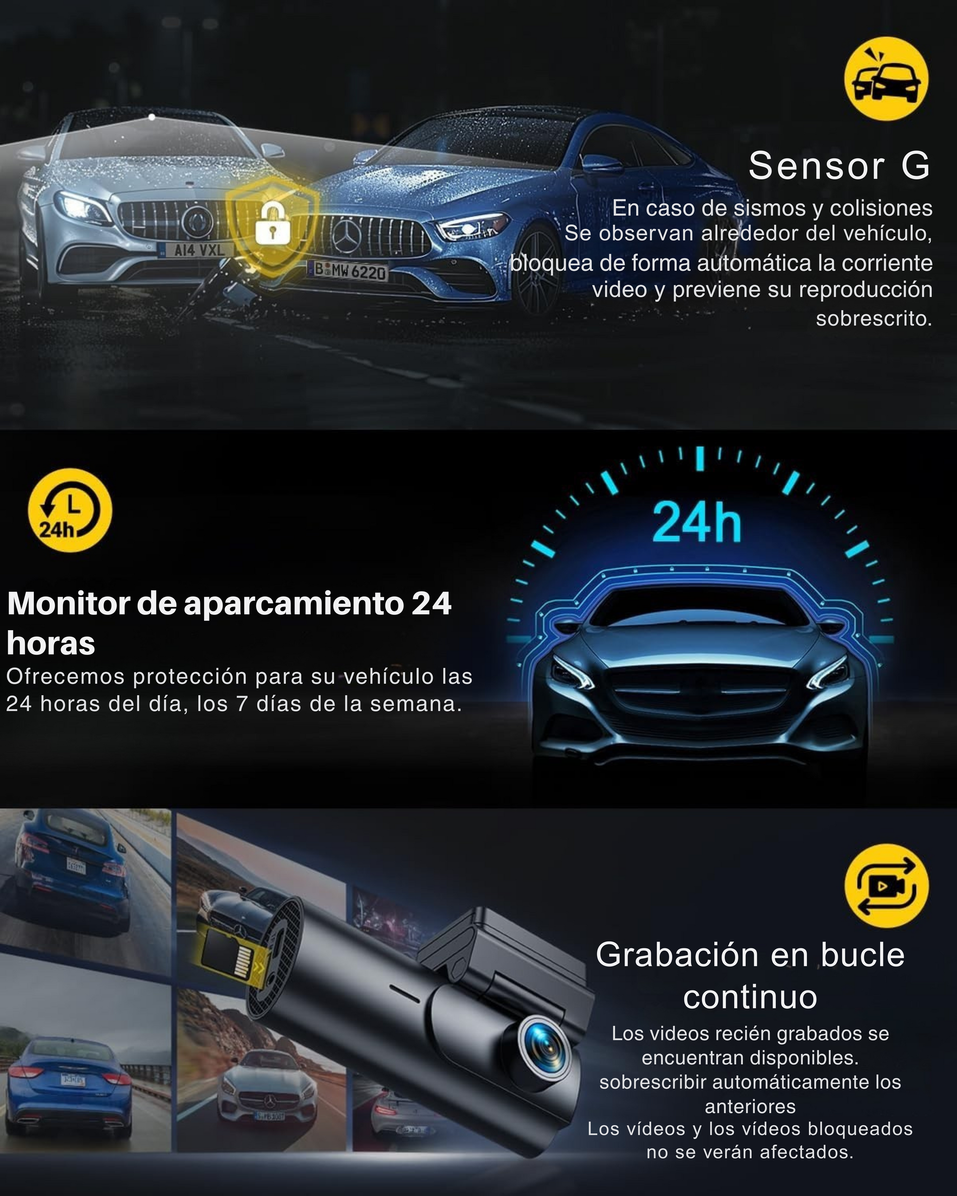 El sensor G detecta impactos o frenadas bruscas y bloquea automáticamente el video grabado en ese momento para que no se borre.
