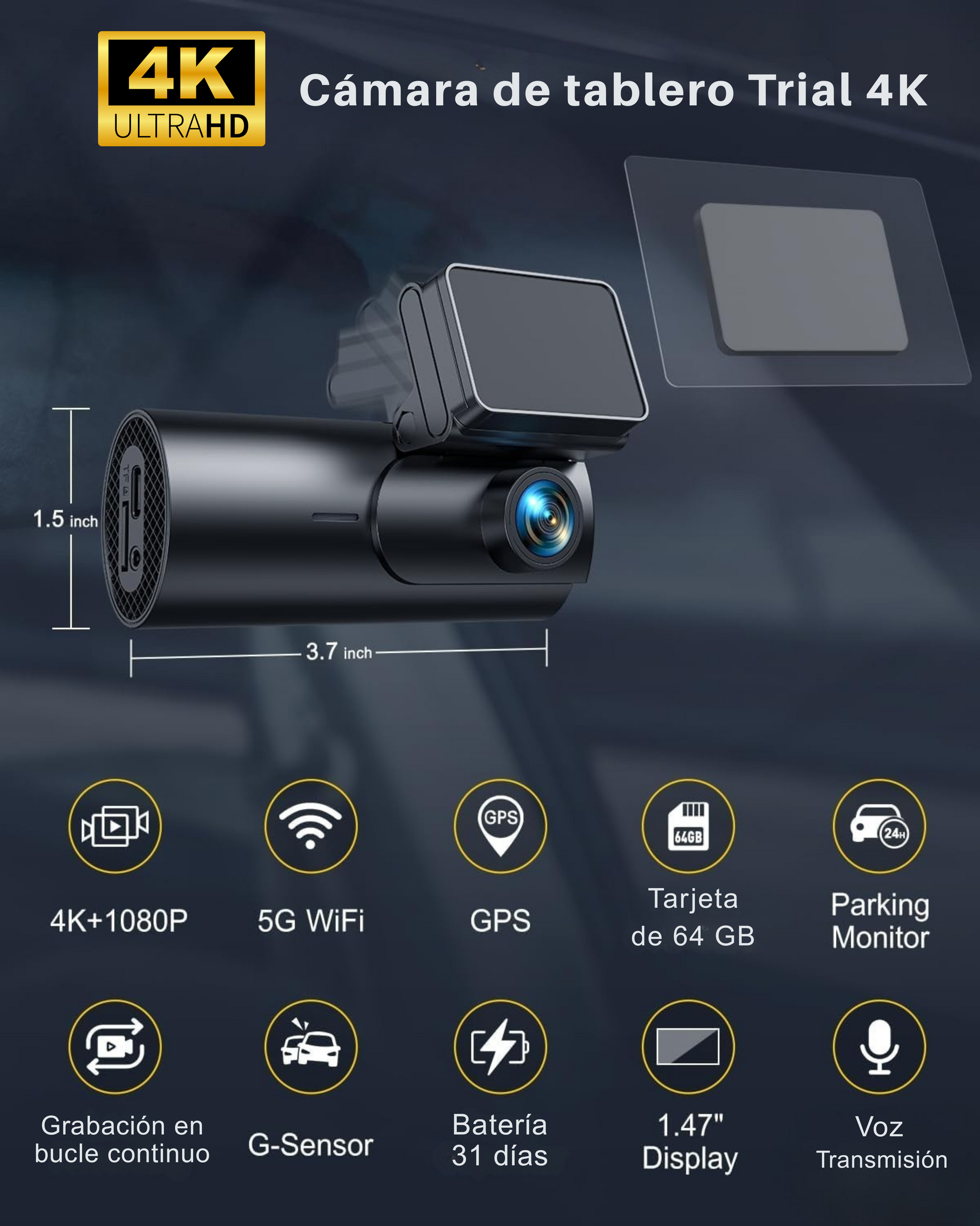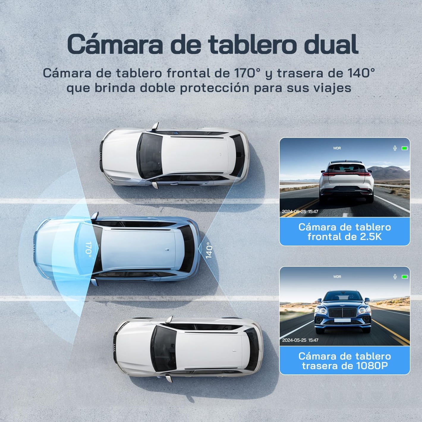 SecurityCam®️ Graba constantemente sin gastar batería del vehículo.Integra una batería para el modo nocturno.