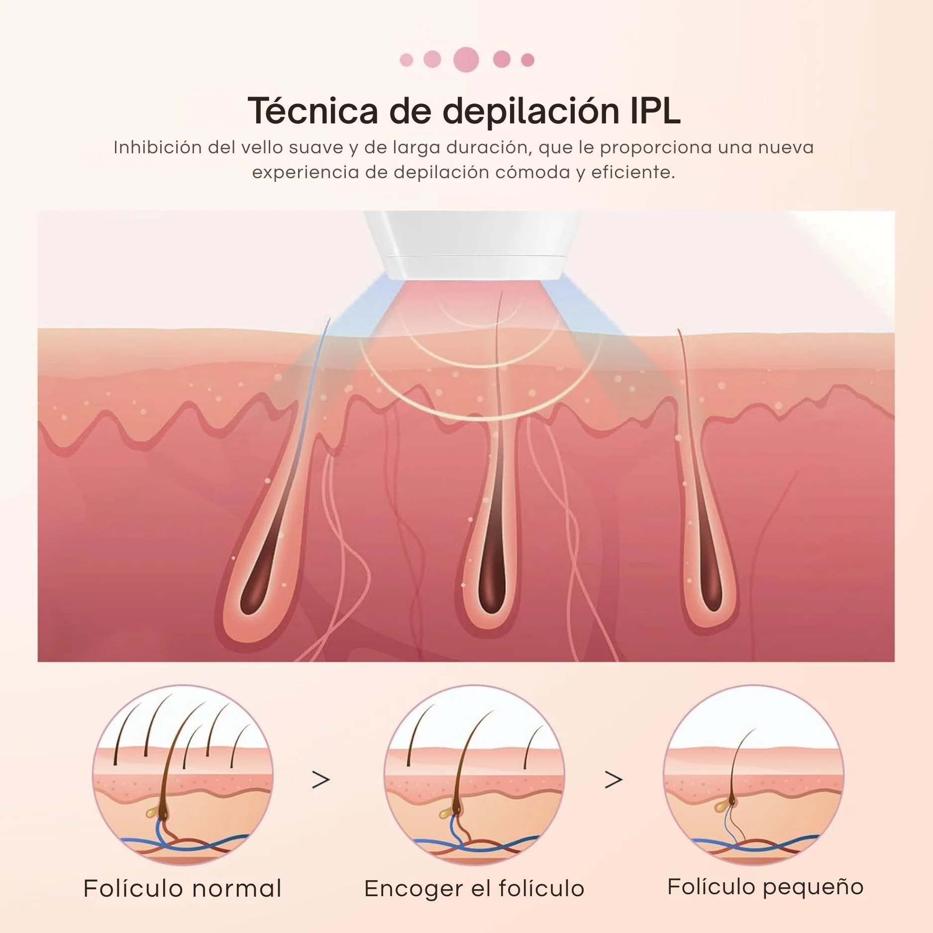 puedes disfrutar de una depilación de calidad profesional sin salir de tu hogar. Gracias a su tecnología avanzada IPL(Luz Pulsada Intensa)