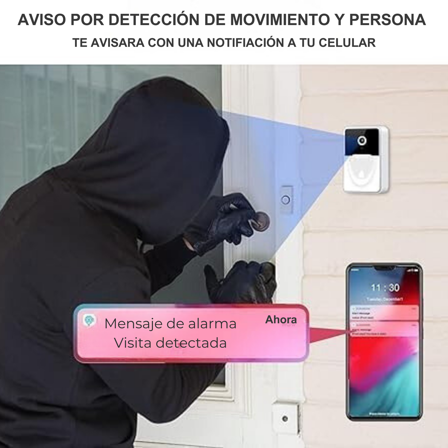 Cuando un visitante toca el timbre, se envía una notificación a tu teléfono