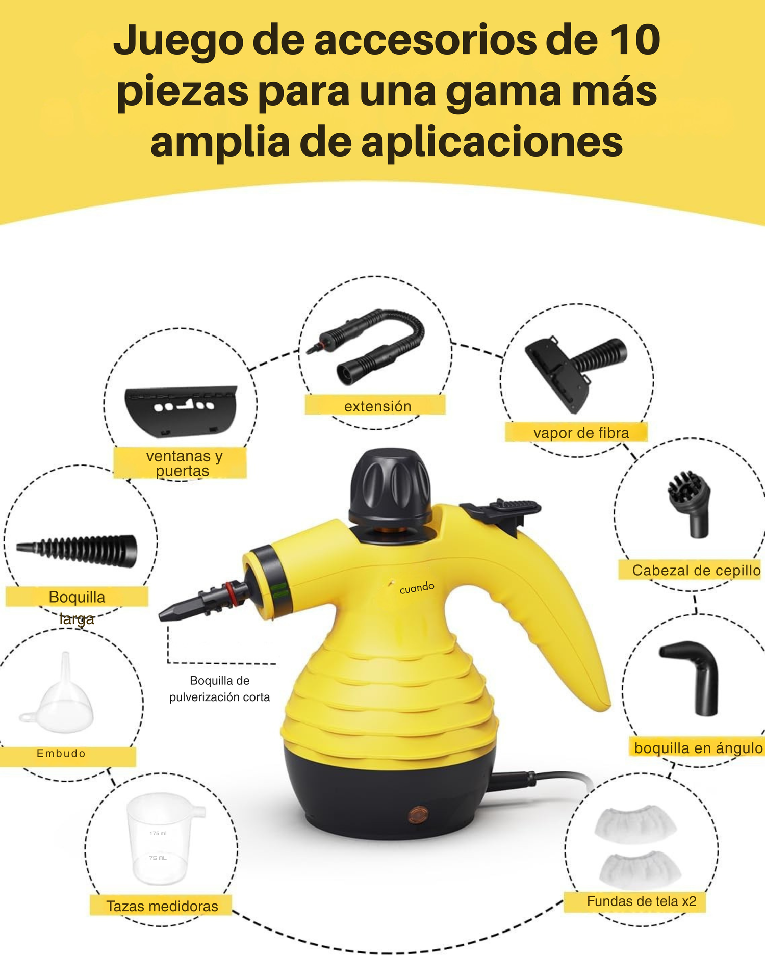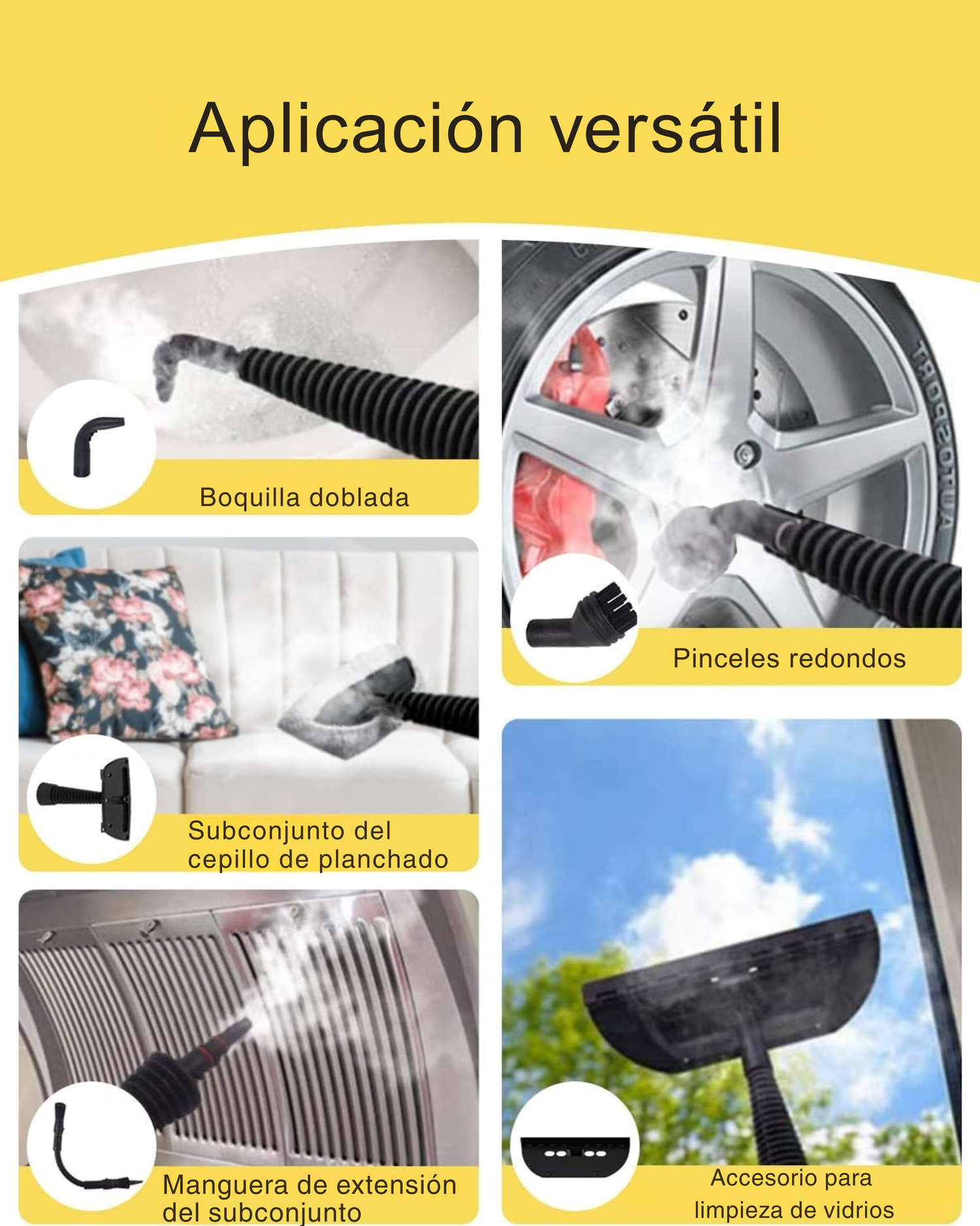 Con múltiples accesorios, llega a rincones, juntas y superficies delicadas. Perfecta para mantener el hogar impecable día tras día.